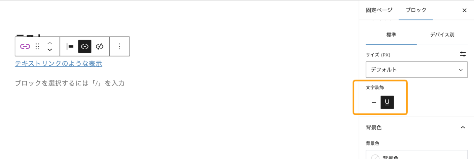 新ボタンブロックに文字に下線を引く設定を追加